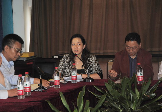 新上任的上海云洲商廈有限公司黨總支書記、上海云洲商廈有限公司副總經理、上海云洲古玩藝術市場經營管理有限公司副總經理、上海云洲商廈有限公司工會主席王莉璟同志(中)在云洲干部任職會上發(fā)言