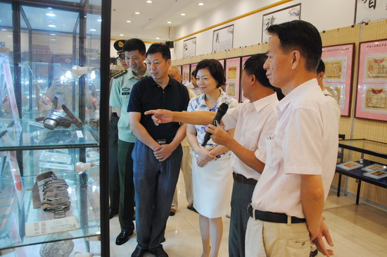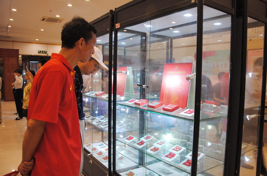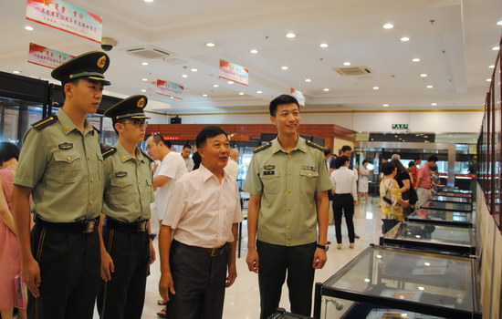 發(fā)言結(jié)束后,郭乃興陪同領(lǐng)導(dǎo)觀展并對(duì)展覽的主題和展品進(jìn)行介紹。此次展覽展出了1955年至2007年間中國(guó)軍人的各類(lèi)肩章、領(lǐng)章、帽徽、獎(jiǎng)?wù)?、紀(jì)念章等標(biāo)識(shí)標(biāo)牌,以及榮譽(yù)證書(shū)、功臣紀(jì)念冊(cè)、雙擁慰問(wèn)品等共千余件藏品,反映了中國(guó)軍人的光輝歷史!