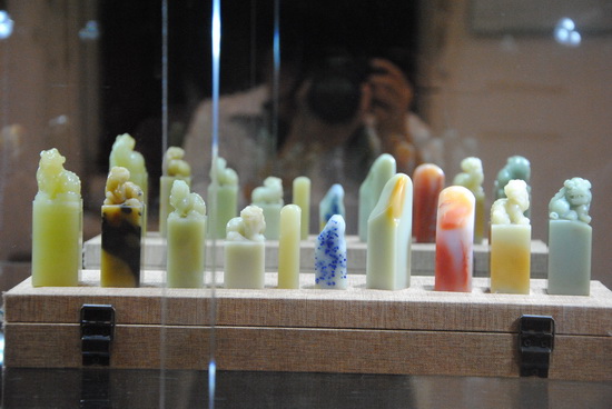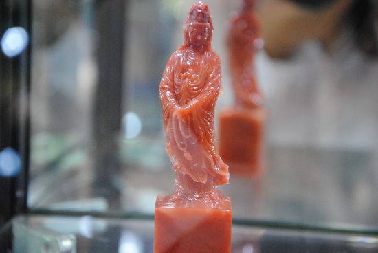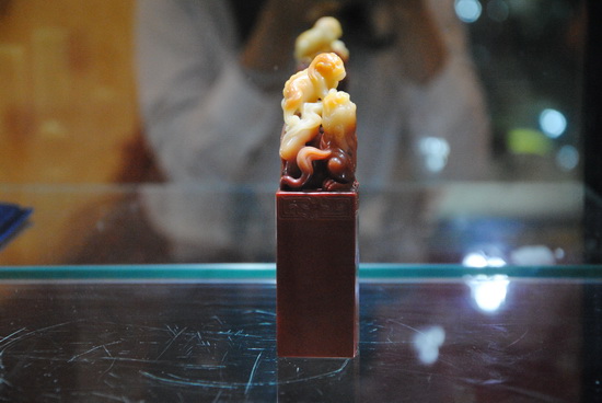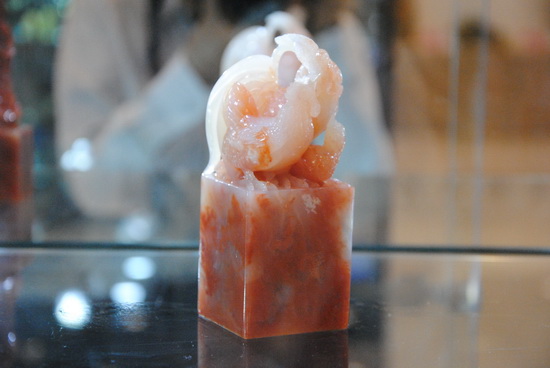 除了青田石雕作品,展會(huì)還展出了印章作品。這些印章石質(zhì)溫潤(rùn),石上的雕刻精巧可人,栩栩如生,令人愛不釋手。