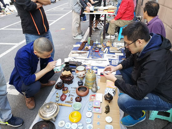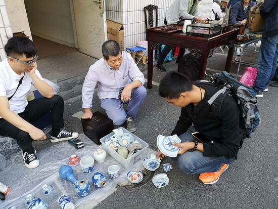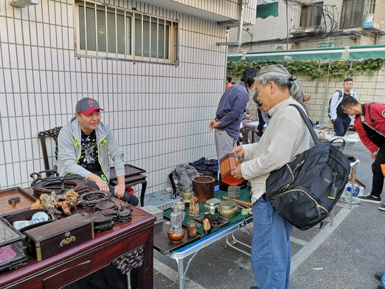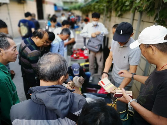 云洲周四集市自9月20日試運(yùn)營(yíng)起,場(chǎng)場(chǎng)爆滿。今天是正式開(kāi)市的第1期,雖是國(guó)慶假期,現(xiàn)場(chǎng)依舊延續(xù)試運(yùn)營(yíng)期間的熱鬧和人氣,藏友們?cè)缭鐏?lái)到集市淘寶,在秋天的朦朧晨曦中、在豐富的藏品中選取喜愛(ài)的,或認(rèn)真鑒賞或悄聲砍價(jià)。熱衷舊書(shū)收藏的藏友拿下了一套《水滸》書(shū)籍,鐘意木雕的藏友入手了一個(gè)小型的老紅木擺件,攤主交易量節(jié)節(jié)攀升。在如此好的氛圍下,周四集市攤位預(yù)定已排至11月。
