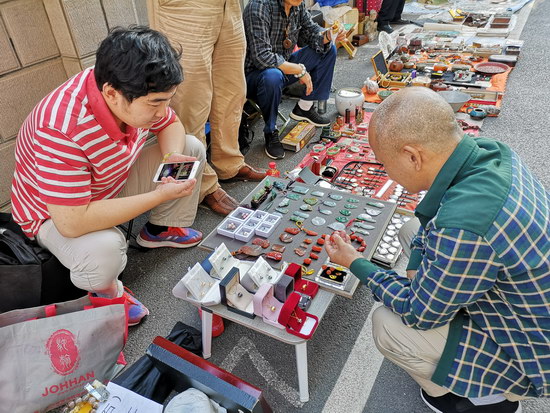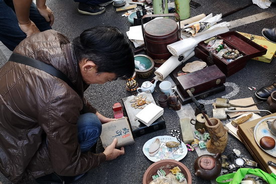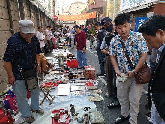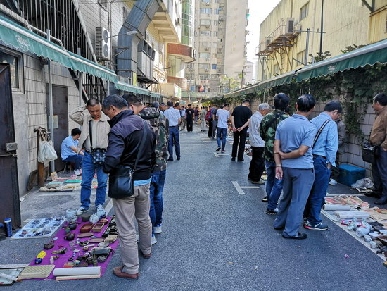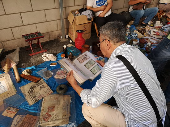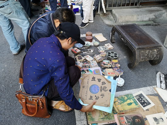 與傳統(tǒng)的周末地?cái)偛煌芩募械拈_(kāi)市時(shí)間提前至凌晨6點(diǎn)之前,其中紙制品攤位更達(dá)到了“鬼市”的時(shí)間標(biāo)準(zhǔn)。藏品范圍廣泛,有瓷片、木器、字畫(huà)、銅器、玉飾、錢幣、老郵票、舊書(shū)籍等常規(guī)類古玩雜項(xiàng),還有老舊唱片、老打字機(jī)以及不同時(shí)期的相機(jī)、手表等一些不太常見(jiàn)的物品。