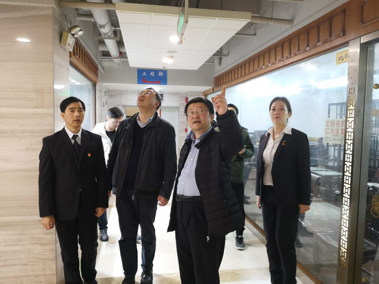 集團(tuán)戚書記和云洲董事長正在工程部機(jī)房進(jìn)行安全檢查