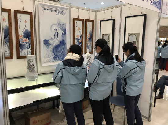 展會(huì)也展出了大量中青年藝術(shù)家的作品。他們構(gòu)思新穎,筆法新奇,讓人眼前一亮。如葉亮的《嬰戲圖》、《仕女圖》等,筆法清麗娟秀,讓人一見即有親切感。一些青年藝術(shù)家還結(jié)合新的技藝,讓瓷畫煥發(fā)出新的生命力!