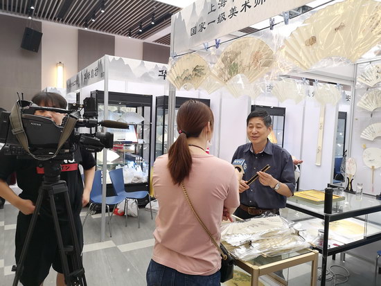 本次扇展是疫情之后云洲舉行的首場(chǎng)展覽,現(xiàn)場(chǎng)人氣爆棚,成交量十分可觀。蘇州美和、程新安制扇等扇廠帶來大量扇骨,種類繁多、品質(zhì)精良,受到很多扇友的青睞。蘇州凌云的宮扇繡工精美,造型驚艷,引發(fā)女粉絲的搶購(gòu)。上海書畫名家、國(guó)家一級(jí)美術(shù)師胡寧海的扇面畫涵蓋山水、花鳥、蟲魚、人物,他還自創(chuàng)燙刻工藝,結(jié)合扇骨上的花紋燙刻圖案,使扇骨和扇面畫相互融合、相得益彰。上海世紀(jì)扇業(yè)的名家成扇,更是有一群忠實(shí)擁躉。與扇藝有關(guān)的扇刻更是引人注目。趙偉陽竹雕工作室等展現(xiàn)精彩絕倫的雕刻技藝。