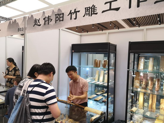 浙江省長(zhǎng)興縣非物質(zhì)文化遺產(chǎn)竹刻傳承人唐永明講解了竹雕工藝