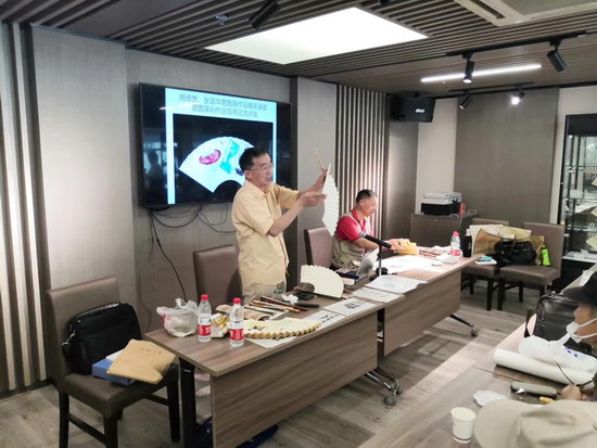 扇面畫名家、同濟(jì)大學(xué)教授周德寬和滬上蟋蟀畫名家張國(guó)華分別講授了扇面畫的知識(shí),并現(xiàn)場(chǎng)指導(dǎo)扇友們進(jìn)行扇面畫創(chuàng)作。