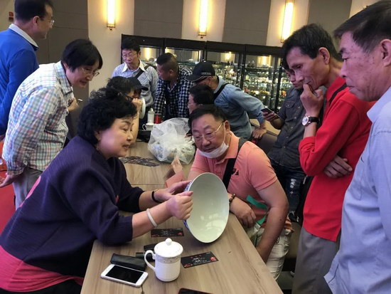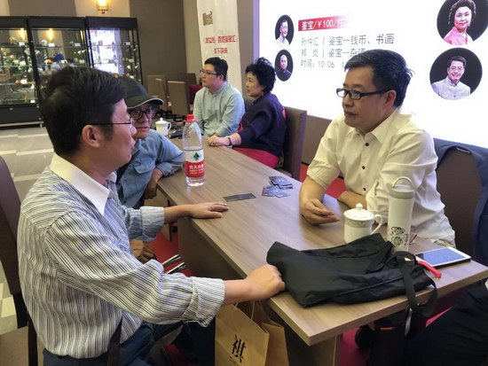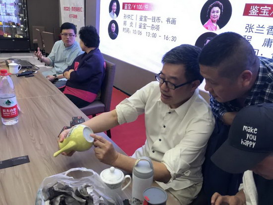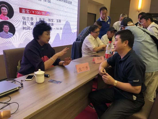 今天下午來(lái)了很多程庸和張?zhí)m香老師的粉絲。一些粉絲說(shuō):以前只能在電視上看到兩位老師??吹奖敬握褂[舉辦專(zhuān)家鑒寶活動(dòng)就趕緊帶了寶貝前來(lái)讓老師們幫忙掌眼。兩位老師的“鐵粉”真是不少!