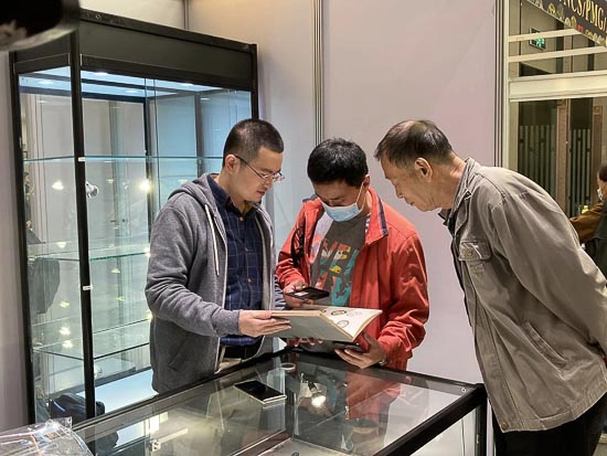 云洲古玩城第13屆錢博會于10月30日至11月1日在8樓交易中心內(nèi)舉行,現(xiàn)已圓滿閉幕。今年受疫情的影響,錢博會的招商工作確實比往年稍有艱難,但是在云洲工作人員堅持不懈的努力下,錢博會依舊開展的如火如荼。同往年一樣,尚未開展,展廳門口就早早排起了長龍,按序領(lǐng)取展會紀(jì)念品108個古錢幣、蓋紀(jì)念章。隊伍中除了有我們熟悉的老面孔,也新增了許多年輕的愛好者,錢幣收藏的覆蓋面已越來越廣,線上交易的新模式吸收了更多年輕力量的加入。