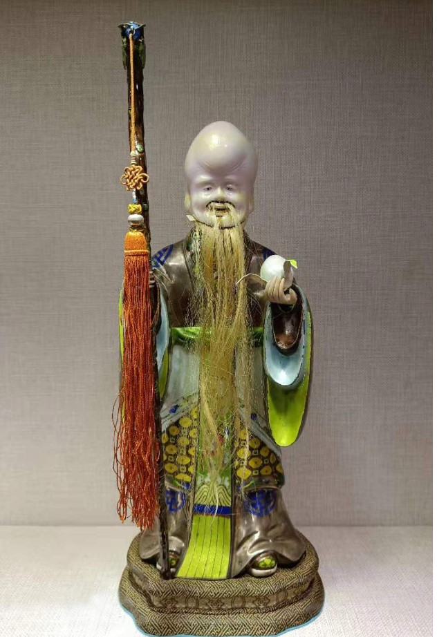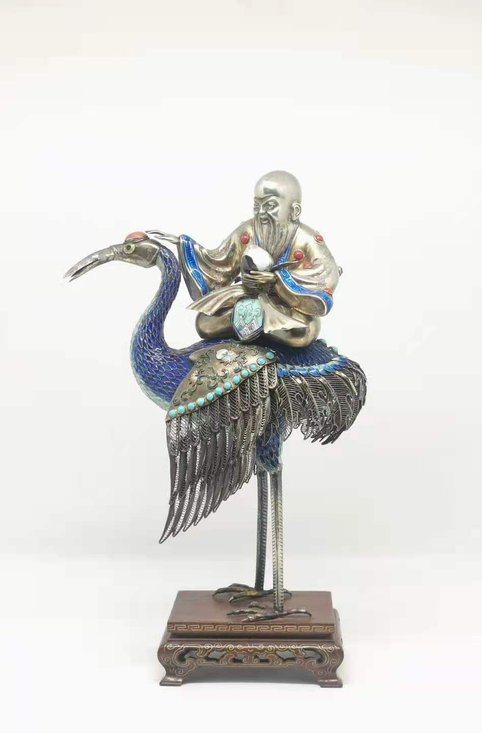 銀花絲琺瑯彩工藝鶴壽延年人物擺件