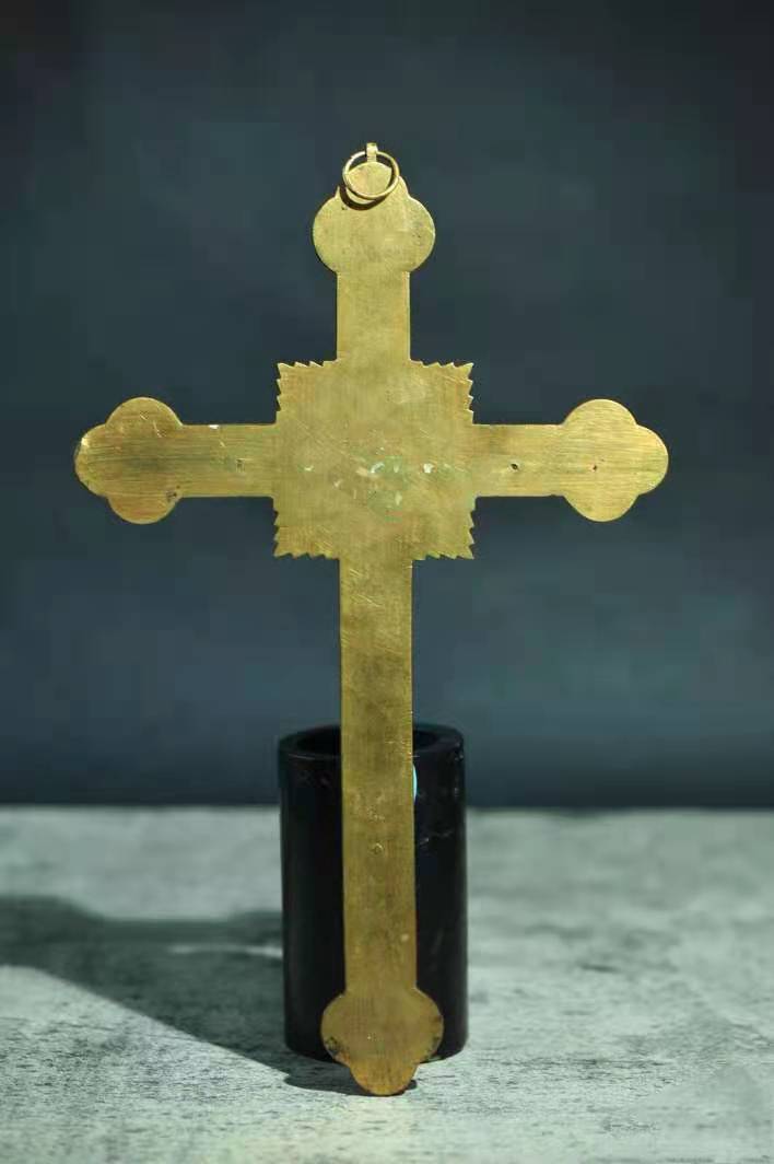 該鎏金銅胎掐絲琺瑯十字架,正面掐絲琺瑯填彩而成,背面通體鎏金。尺寸碩大、份量厚重、工藝精美、品像完整。作為僅此一件的民國(guó)早期教會(huì)在京工琺瑯局的定制之物,非普通信徒和牧師所能擁有。