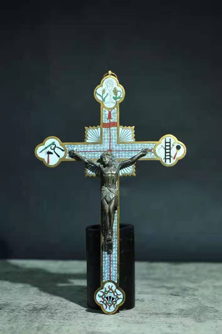 民國(guó)時(shí)期教會(huì)定制銅胎掐絲琺瑯十字架