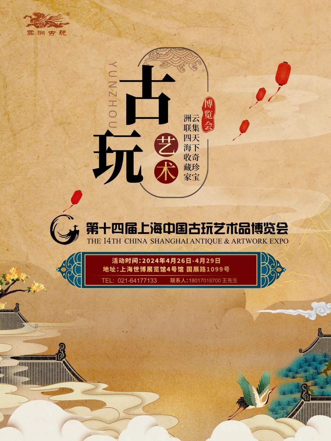自2008年起,每年四月由上海云洲古玩城舉辦的上?!ぶ袊磐嫠囆g(shù)品博覽會(以下簡稱古博會),已逐漸成為上海重要文化品牌之一和具備全國影響力的文物藝術(shù)品行業(yè)盛會。今年第十四屆古博會將于4月26日 - 4月29日在上海世博展覽館4號館舉辦。