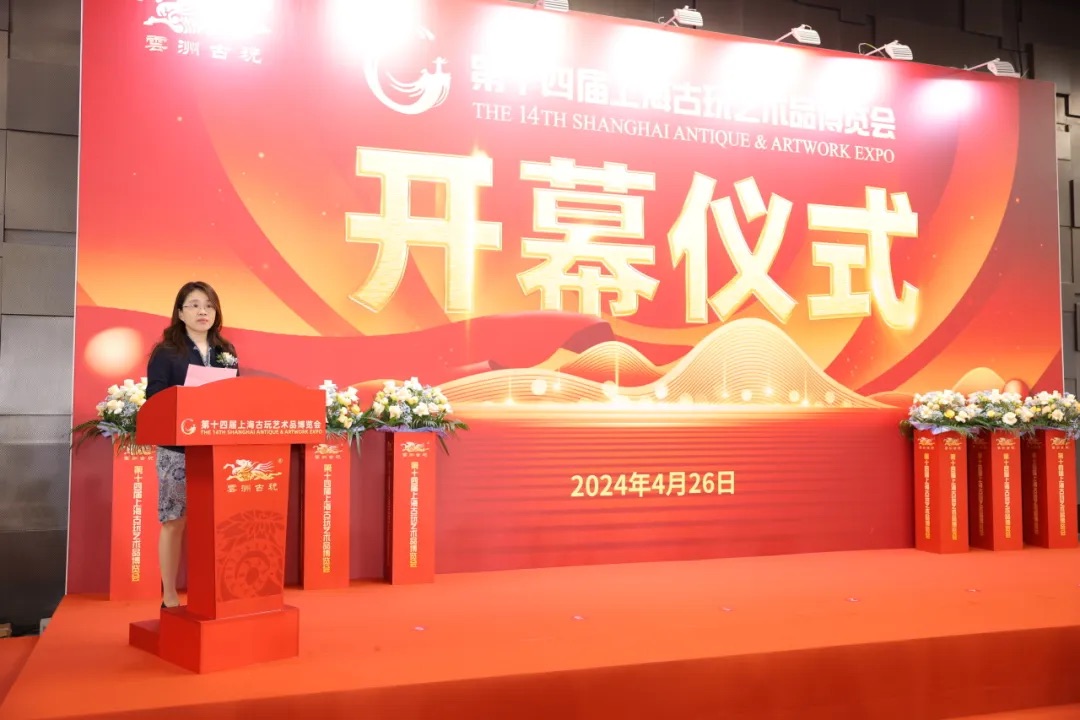 開幕式上,上海新徐匯(集團)有限公司黨委副書記、總經(jīng)理陳黎驊女士為本屆古博會致歡迎辭。上海市收藏協(xié)會創(chuàng)始會長吳少華先生和全聯(lián)民間文物藝術(shù)品商會創(chuàng)始會長宋建文先生共同表達了對古博會成功的美好祝愿。