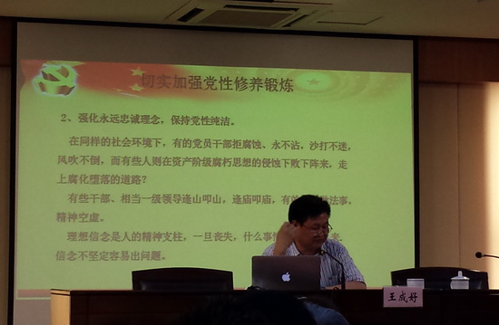 5月29日下午三點,在徐匯區(qū)業(yè)余大學(xué)六樓會議廳,斜土街道黨委書記王成好同志為街道所轄的“兩新”組織的書記和黨員上了一堂生動的黨課。在短短的近兩節(jié)課的時間內(nèi),王書記運用自己多年從事黨務(wù)工作的經(jīng)驗和豐富的黨建理論,深入淺出地給大家講這次群眾路線教育的重要意義及必要性,王書記用大量的事實,從正反兩個角度,語重心長地勉勵大家要做學(xué)習(xí)的模范,工作的模范,服務(wù)的模范,道德實踐的模范!