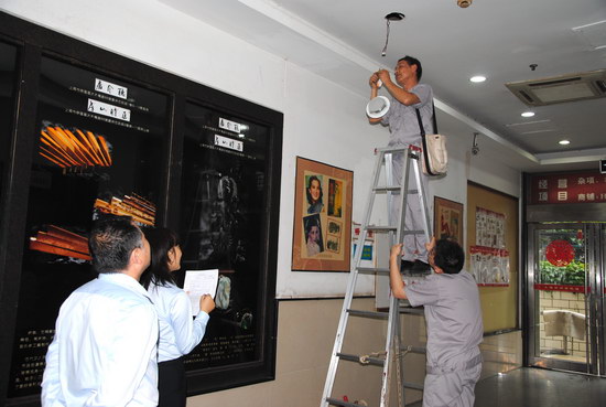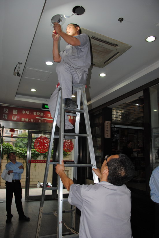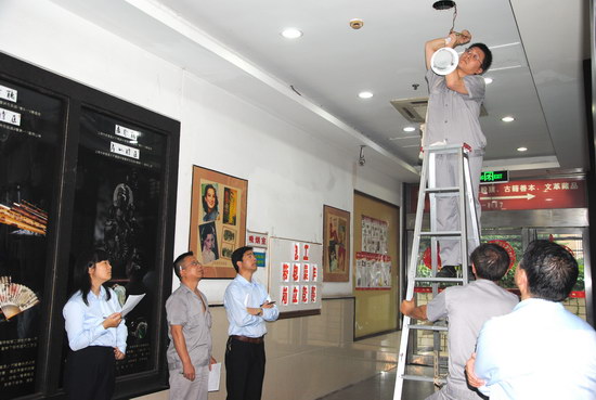 7月1日、2日,公司4名電工分兩批,在一樓西面大堂舉行帶電操作,內(nèi)容為在帶電的情況下將原來(lái)節(jié)能燈換成LED筒燈。帶電換燈,注重規(guī)范操作,特別是在拆裝過(guò)程中接觸電線、剪接火線、零線時(shí),很容易觸電,而在人員合作上,換燈必須兩人操作,扶梯子、遞工具都需要兩人相互配合。經(jīng)過(guò)充分地準(zhǔn)備,4名電工完成了帶電操作崗位競(jìng)賽,顧曉冬獲得了第一名。