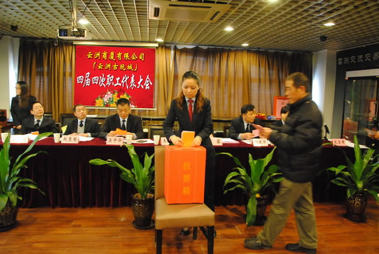 云洲商廈四屆四次職工代表大會(huì)于2015年1月16日在八樓多功能廳隆重舉行。30余名代表和列席代表出席了會(huì)議。作為上海市文明單位的云洲,充分認(rèn)識(shí)到職代會(huì)是實(shí)行民主管理的基本形式,是構(gòu)建和諧勞動(dòng)關(guān)系的重要制度,多年來(lái)定期舉行職代會(huì)已成為常態(tài)化。