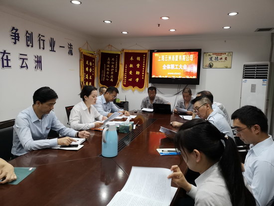 云洲商廈于2018年6月27、28日分兩天召開(kāi)全體職工大會(huì)暨迎“七一”黨群座談會(huì)。會(huì)議由黨總支書(shū)記、副總經(jīng)理、工會(huì)主席王莉璟主持。會(huì)議共分三個(gè)議程進(jìn)行,就做好2017-2018年度上海市精神文明創(chuàng)建工作、迎接中國(guó)國(guó)際進(jìn)口博覽會(huì)做好窗口工作,云洲三年行動(dòng)規(guī)劃,近階段重點(diǎn)工作進(jìn)行了布置。首先王書(shū)記宣讀了徐匯區(qū)關(guān)于精神文明創(chuàng)建工作的指導(dǎo)要求,就如何做好中國(guó)國(guó)際進(jìn)口博覽會(huì)做好窗口工作進(jìn)行了布置。接著結(jié)合PPT對(duì)云洲2018-2020年三年行動(dòng)規(guī)劃做了深入淺出的講解,讓全體職工進(jìn)一步了解公司今后的發(fā)展規(guī)劃,明確公司今后發(fā)展方向,做到上下信息對(duì)稱(chēng),有利于今后工作更好開(kāi)展。在坐職工對(duì)三年規(guī)劃及公司面臨的一些問(wèn)題談了自己的看法和意見(jiàn),在市場(chǎng)環(huán)境不好的情況下如何苦練內(nèi)功,立足本職,促進(jìn)公司有序發(fā)展。副總經(jīng)理姚旗榮也做了發(fā)言,他首先提到云洲的安全工作的重要性,其次對(duì)如何突破瓶頸開(kāi)展好云洲的各項(xiàng)工作提了要求,并對(duì)新成立的5個(gè)項(xiàng)目組給予了肯定。