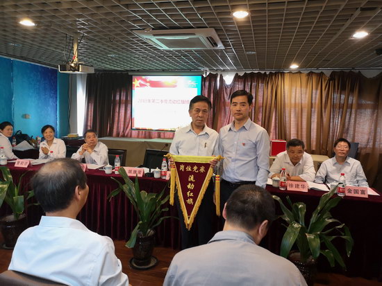 副總經(jīng)理姚旗榮為2018年第二季度流動(dòng)紅旗班組頒發(fā)流動(dòng)紅旗
