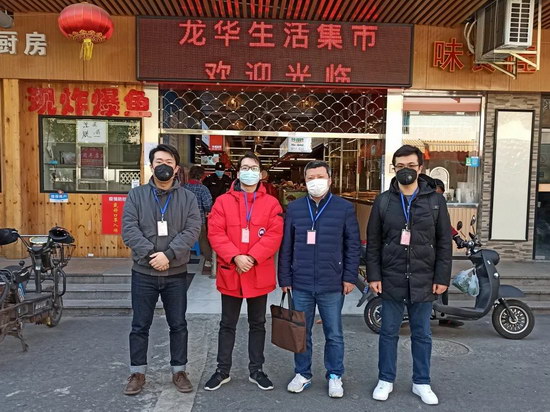 2月15日,云洲第一批支援隊員兵分兩路,男同志挑起重任,在菜籃子公司各片區(qū)組長的帶領(lǐng)下,對徐匯區(qū)內(nèi)46家菜市場開展每天的防疫監(jiān)督管理工作,對每個菜場的防疫措施和市場內(nèi)經(jīng)營戶的防疫物資使用情況進(jìn)行檢查。雖說隊員們有各自管轄的區(qū)域,但轄區(qū)內(nèi)每個菜場之間仍然有數(shù)公里的間隔距離,隊員們各使其法,奔波在抗疫檢查前線。身體累,但檢查工作絲毫不馬虎,認(rèn)真查看市場內(nèi)的防疫宣傳公示欄、消毒記錄表、測溫情況表,以及營業(yè)商戶是否接觸過重點(diǎn)疫區(qū)人員,家里是否接待過來滬人員等的情況,和返滬經(jīng)營戶的隔離監(jiān)督情況。確保每家菜市場均處于安全環(huán)境之下。支援隊里有幾位黨員老同志說,一天這么走下來,晚上腿酸地抬不起來,但是,一想到這是保衛(wèi)老百姓菜籃子安全的要緊事,第二天就又渾身都是勁了。