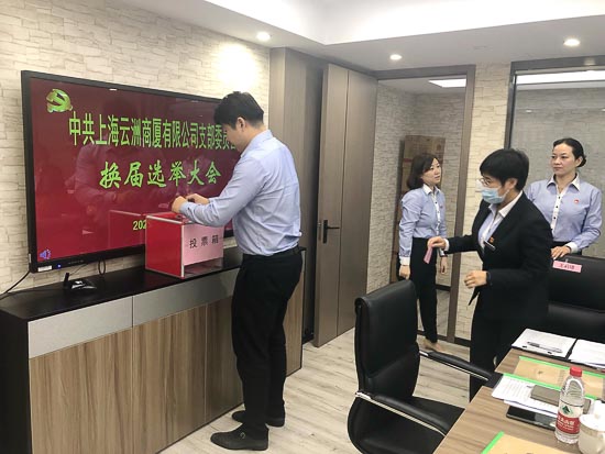 10月21日下午,云洲商廈黨支部在經(jīng)過(guò)兩輪自下而上的推薦選舉后,召開了全體黨員大會(huì),進(jìn)行由黨總支改建為黨支部的新一屆支部委員會(huì)換屆選舉。新徐匯集團(tuán)黨委書記戚振國(guó)、黨辦主任吳文卿出席會(huì)議。