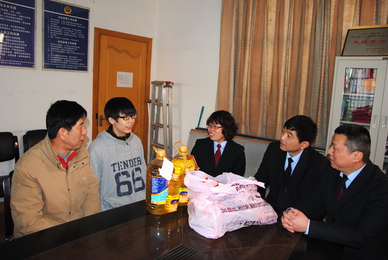 在春節(jié)來臨之際,云洲黨總支書記楊冬梅、總經(jīng)理助理李洪元、市場部經(jīng)理助理張偉民、商戶黨員代表季秀蘭等組成慰問小組,分別前去肇清居委、日暉一居委等結(jié)對共建社區(qū),慰問了結(jié)對助學(xué)的兩名學(xué)生。每到一家,他們都關(guān)切地問起學(xué)生的學(xué)習(xí)、生活情況,兩名學(xué)生也主動向關(guān)心他們的好心人匯報了自己的學(xué)習(xí)情況。而對即將參加高考的尤同學(xué),大家更是關(guān)切萬分,希望他努力學(xué)習(xí),調(diào)整心情,化壓力為動力,爭取考上理想的大學(xué)。
