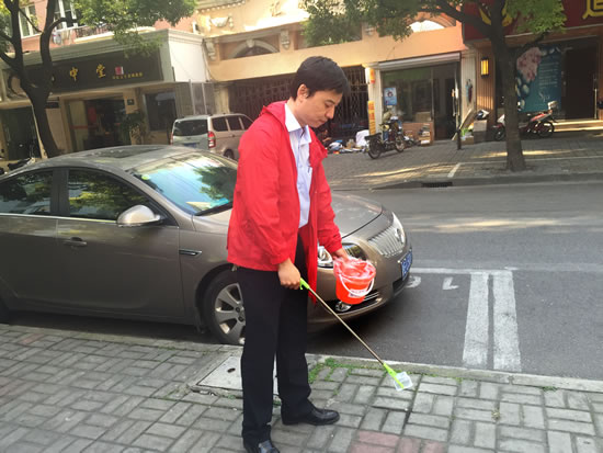 志愿者們一路認真的尋找地上的煙頭,絕不放過一個死角。不一會在這秋高氣爽的天氣里志愿者們頭上卻都布了一層汗珠,但看到手上的小桶里裝滿了各種垃圾,而道路上變得更加干凈整潔,他們臉上都洋溢著滿足的笑容,使身上穿著的紅色志愿者衣服在陽光下格外顯眼。