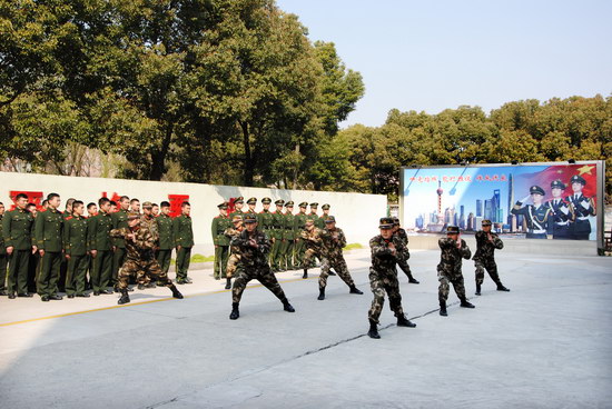 走在滿目綠意的華涇路上,綿綿的春風(fēng),吹拂在身上,心情格外舒暢。3月26日,云洲古玩城舉行低碳、雙擁活動。大家以綠色步行的方式,隨著云洲二十幾位領(lǐng)導(dǎo)、同事的步伐走進(jìn)武警上海市總隊第六支隊五中隊中去。對于從未當(dāng)過兵的我,只是在電影電視劇中看過當(dāng)兵的人,在現(xiàn)實(shí)中到底是怎么樣的呢?即將要第一次踏進(jìn)兵營,心中充滿了好奇和期待。