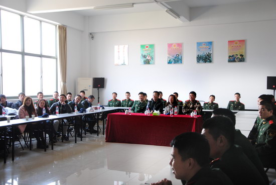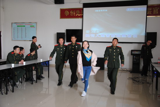 在熱血沸騰的操練后,我們一行人隨著武警中隊指導(dǎo)員的帶領(lǐng)參觀了兵哥們的寢室和訓(xùn)練場所,又在多功能大廳與兵哥們舉行了熱鬧、捧腹最后又有一些感動的互動游戲,隨著一絲不舍中這次活動圓滿結(jié)束。