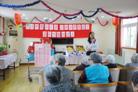 重陽(yáng)節(jié),作為中國(guó)的傳統(tǒng)節(jié)日,歷史悠久,尊老愛(ài)幼又是我們傳統(tǒng)的美德。10月13日上午,在斜土街道肇清居委領(lǐng)導(dǎo)的陪同下,云洲總經(jīng)理吳中澤、工會(huì)主席蔣蓉等一行人看望慰問(wèn)了斜土社區(qū)敬老院的老人,向他們送去了重陽(yáng)糕、水果等節(jié)日慰問(wèn)品。工會(huì)主席蔣蓉也代表云洲商廈致辭,向老人們送上節(jié)日的祝福與問(wèn)候,希望爺爺奶奶們能健康長(zhǎng)壽,安享晚年。老人們也都非常開(kāi)心,各個(gè)臉上洋溢著笑容,感謝單位對(duì)他們的關(guān)心,整個(gè)氣氛歡快祥和,其樂(lè)融融。作為上海市文明單位的云洲商廈在每年重陽(yáng)節(jié)時(shí)去社區(qū)敬老院看望慰問(wèn)老人們已成為多年來(lái)的傳統(tǒng),視作一種社會(huì)責(zé)任,堅(jiān)持到了現(xiàn)在且受到了街道社區(qū)居民的好評(píng)。