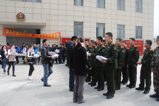 商廈領(lǐng)導(dǎo)職工為武警戰(zhàn)士贈(zèng)送生活用品