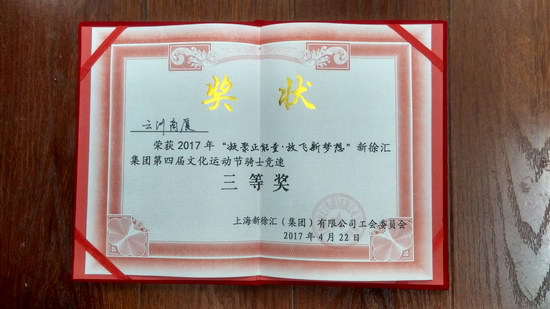 2017年4月22日,為了更好的進(jìn)行團(tuán)隊(duì)精神建設(shè),展現(xiàn)云洲人的風(fēng)采,云洲商廈職工參加了新徐匯集團(tuán)第四屆文化運(yùn)動(dòng)節(jié)。為了更好的展現(xiàn)精神面貌,體現(xiàn)整齊劃一的動(dòng)作,公司為參加廣播操等集體項(xiàng)目的隊(duì)員配備了運(yùn)動(dòng)服。在比賽前兩個(gè)星期參賽隊(duì)員們就在忙碌的日常工作中擠出時(shí)間積極排練廣播操、練習(xí)長(zhǎng)繩和騎士競(jìng)速項(xiàng)目,加強(qiáng)協(xié)作和練習(xí),爭(zhēng)取取得好名次,將最好的風(fēng)貌展現(xiàn)在集團(tuán)領(lǐng)導(dǎo)和同事面前。最終,云洲商廈取得了集體項(xiàng)目騎士競(jìng)速三等獎(jiǎng)的好成績(jī),數(shù)名員工取得了個(gè)人項(xiàng)目的好成績(jī)。
