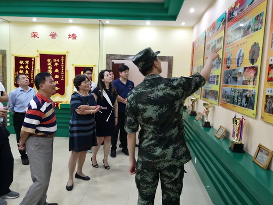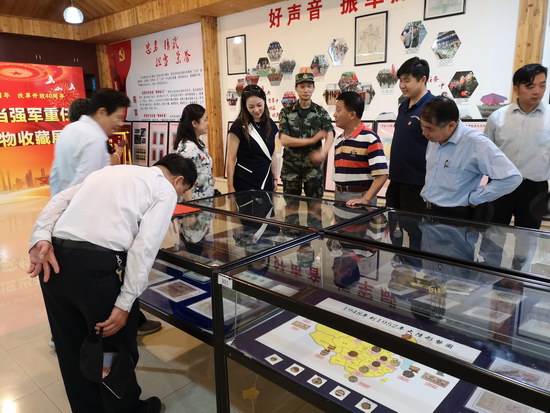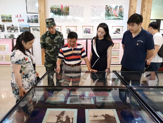 在支隊(duì)教導(dǎo)員的引領(lǐng)下,云洲職工參觀“紅色文化文獻(xiàn)實(shí)物收藏展”。
