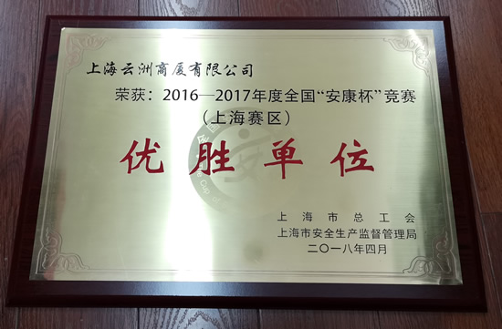 經(jīng)過全國“安康杯”競賽(上海賽區(qū))評審委員會評審,上海云洲商廈有限公司榮獲2016-2017年度全國“安康杯”競賽(上海賽區(qū))優(yōu)勝單位。