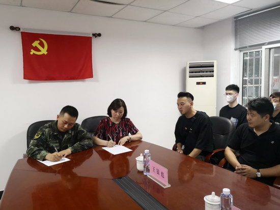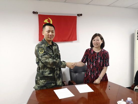 我們首先觀摩了官兵們的比武操練,戰(zhàn)士們扎實的擒拿功夫贏得大家的陣陣掌聲。接著,參觀了中隊的榮譽室并聆聽武警戰(zhàn)士對中隊歷史的講解。之后,觀看了官兵的內(nèi)勤示范,戰(zhàn)士嫻熟的疊軍被技巧博得大家的交口稱贊。隨后,大家在會議室與中隊領(lǐng)導(dǎo)進行交流,了解官兵們的工作和生活情況。云洲職工中的幾位退伍軍人也結(jié)合自己的軍旅生活經(jīng)驗,與中隊領(lǐng)導(dǎo)交流軍隊新變比。最后,云洲黨支部副書記鮑紅與中隊領(lǐng)導(dǎo)簽訂了《雙擁共建協(xié)議書》,約定在未來兩年中,互相合作,加強交流,積極參與社區(qū)雙擁活動。
