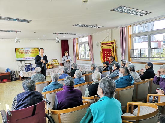 在慰問新徐匯樂爾之家養(yǎng)老院時,一位廣東籍的老人看到我們的到來十分欣喜,她還用粵語演唱了一首《上海灘》來表達對我們的歡迎。