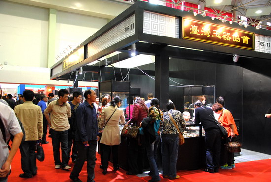 珠寶、玉器也是本次展會(huì)大熱。泰國(guó)裕泰珠寶行前姑娘們駐足觀看,不忍挪步。他家有世界上最好的藍(lán)寶石——克什米爾“矢車(chē)菊”:表面藍(lán)色,打光后變色,藍(lán)中帶紫;有唯一一個(gè)有名字的寶石——蓮花(帕德瑪剛玉),它的顏色在粉、橙之間,十分難得;還有1克拉、2克拉、3克拉的鴿血紅,色彩紅艷可人。由于紅寶石存在天然的瑕疵,需要進(jìn)行熱處理才能達(dá)到完美效果,而泰國(guó)的熱處理技術(shù)一流,能使寶石表面更美。其他珠寶店人氣也相當(dāng)旺?,|立珠寶的名貴翡翠在聚光燈下灼灼閃光,像磁石一樣老遠(yuǎn)就能將藏友的目光吸引過(guò)來(lái)。璞德堂的和田籽玉溫潤(rùn)、光滑,雕成猴、龍、鵪鶉等吉祥圖案,適合細(xì)細(xì)把玩。天景行的乾隆時(shí)期黃玉螭龍瓶則由一塊罕見(jiàn)的、較大的玉制作而成,做工精細(xì),龍的動(dòng)態(tài)栩栩如生。還有臻藝軒展出的各色形似瓜果菜肴的石頭也十分有趣。