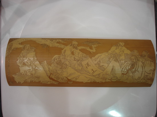 紫砂壺和竹雕的愛(ài)好者也能找到他們喜愛(ài)的去處。江蘇宜興紫砂記工作室展出了周亞春老師制作的各種茶壺。其中,雙線竹鼓壺用上等紫砂泥料支撐,壺身貼竹葉裝飾,竹葉飽滿筆直,手法精致,整體線條流暢,非常美觀,是不可多得的一件珍品。它砂性隱現(xiàn)、透氣好、易泡養(yǎng),壺體端莊質(zhì)樸無(wú)華、質(zhì)地細(xì)膩、手感極佳。趙偉陽(yáng)工作室展出了《天然如意》和《醉八仙》等作品。《天然竹如意》取自天然的毛竹變異材料,竹上結(jié)天然如意造型,作者在竹子上繪仿古云圖,儼然一把天然的竹如意?!蹲戆讼伞啡宋锩娌坑弥袂囝伾憩F(xiàn),繪畫(huà)與淺浮雕結(jié)合在大約一毫米的竹青上,人物神態(tài)細(xì)膩、逼真,整幅圖案立體感強(qiáng),是不可多得的竹雕精品。