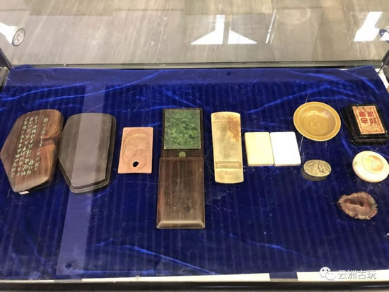 在分會場云洲古玩城,“紀(jì)念建國七十周年錢陽春文房雅韻展”展出的書畫、文房用品引來不少藏友的觀瞻。