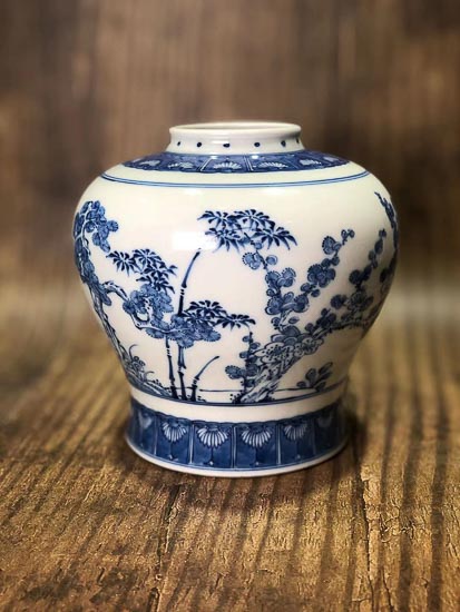 清雍正 青花松竹梅紋天字罐