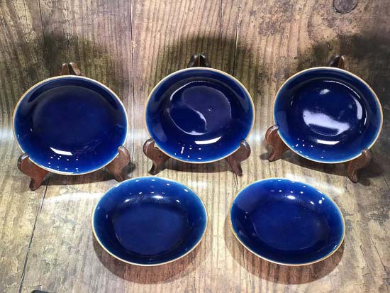清乾隆 藍釉盤一組5件