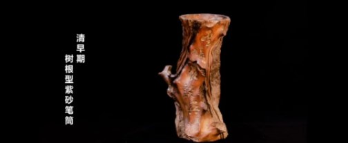 紫砂是我們熟悉的一種材質(zhì),常見(jiàn)的有紫砂壺、紫砂杯,還有各種紫砂茶寵以及紫砂小把件,這些我們平時(shí)一眼就能看出是紫砂材質(zhì),但是,在古博會(huì)的一個(gè)展位內(nèi),有這樣一款 清早期·樹(shù)根型紫砂筆筒,乍一看,以為是根雕,仔細(xì)看,原來(lái)是采用根雕技法制作的紫砂筆筒。其雕刻技藝可謂高超,燒制技術(shù)也毫不遜色,樹(shù)根特有的紋理和樹(shù)疤,一一還原。
