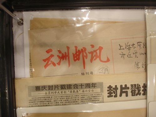 集郵報(bào)刊版塊內(nèi)容更為豐富。這里展出了上世紀(jì)八十年代以來極為珍貴的各行各業(yè)的創(chuàng)刊號。有些是手刻油印的,雖然被郵友悉心收藏,但仍然泛著歲月的黃色。展品中還有上海各個(gè)地區(qū),包括徐匯、青浦、松江、靜安等地的集郵報(bào)刊。云洲作為早期集郵的基地之一曾經(jīng)發(fā)行的《云洲郵訊》出現(xiàn)在本次展覽中,令人倍感親切。而更感人的是在那方寸之間凝聚郵迷心血的動人故事。展品中有一組為上海郵政史研究會的會長薛魁武與女婿曹紀(jì)平集郵收藏展展品。薛翁今天親臨現(xiàn)場,雖然年近八十,卻精神矍鑠。他用心籌備數(shù)年,幾經(jīng)波折終于在去年舉辦了翁婿集郵收藏展,完成心中作為郵迷的一大心愿。