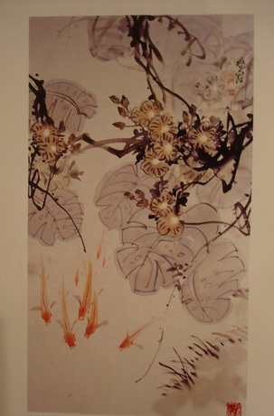 如果說畫家金義安的畫作將我們帶入了仙境,那么畫壇雙生子何承錫和何承爵為我們呈現(xiàn)的是俗世的美。雖兩人為一母同日所生,但由于各自經(jīng)歷不同,畫風(fēng)各異。承錫善于展現(xiàn)色彩瑰麗的效果,承爵鐘情水墨寫意。承錫畫作《紫薇鳥語》中,雖為同一枝上的細(xì)葉,顏色或鵝黃或嫩綠或深翠或淺棕,片片不同,細(xì)膩展現(xiàn)了陽光下枝葉豐富的色調(diào)。而枝上頂著茸黃花蕊、展開淺紫色花瓣的紫薇花向著陽光的方向恣意綻放,睜著明亮的棕色眼睛的小鳥昂首啾啾,無不展現(xiàn)了畫家對生活的熱愛。相較而言,承爵更為惜墨,只三兩筆就勾出幾尾靈動游曳的小魚、水上婆娑伸展的亂枝、熱鬧綻放的花朵,畫面唯美,氣韻悠然。兩人合作的《百花圖》不用細(xì)分哪一筆來自承錫,哪一筆來自承爵,它就像一首交響樂,和諧而美好。