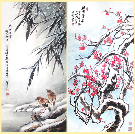 著名畫家何承錫作品:《寒江初雪》、《梅雪爭春》