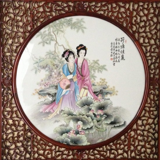 邱含(中國工藝美術(shù)大師)作品2尺6瓷板《君子論道》