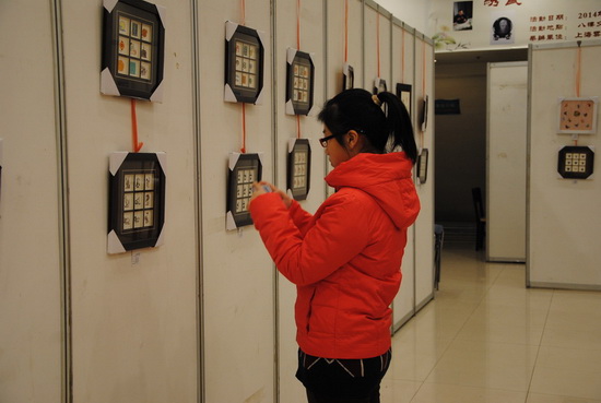 印章是門古老的中國藝術(shù)。來自阮力工作室的小學(xué)員們以小小的方印為載體,盡情發(fā)揮自己的想象力,融書法、繪畫、雕刻于一體,結(jié)合中、日、韓民族的文化,為我們呈現(xiàn)了一組組既顯童真稚趣又展現(xiàn)異域風(fēng)情的書畫印作品。作品組《十二月份》由十二位小朋友共同完成。每個月份由九幅書畫印展現(xiàn)。月份用充滿日本風(fēng)情的月份別名命名并用篆書刻于首行中間,如一月為“睦月”,二月為“如月”,三月為“彌生”。其他八幅彩色繪畫印則用童趣盎然的畫面展現(xiàn)每月的動植物和風(fēng)俗等如一月的蘿卜、八月的蟬、九月盂蘭盆節(jié)鑼鼓等。除日本風(fēng)情外,上海風(fēng)景、功夫熊貓、十二生肖、青花瓷等,凡目之所見都成為了書畫印的題材。書法印工整流暢,透露著古典雅致美,繪畫印顏色明麗,線條稚嫩可愛,這門既傳統(tǒng)又活潑的藝術(shù)成了連接中日文化的橋梁,吸引了不少中外觀者駐足欣賞。