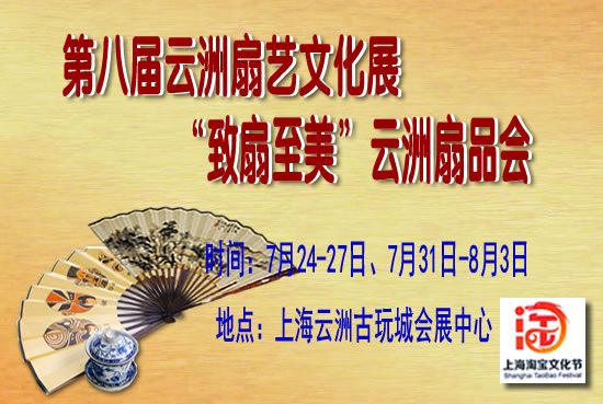 逢酷暑盛夏來臨之際,作為上海市第二屆市民淘寶文化節(jié)會(huì)場(chǎng)之一的上海云洲古玩城,將于7月24日至7月27日、7月31日至8月3日在云洲八樓會(huì)展中心舉行為期兩場(chǎng)的扇藝扇品系列展——第八屆云洲扇藝文化展、“致扇至美”云洲扇品會(huì)。