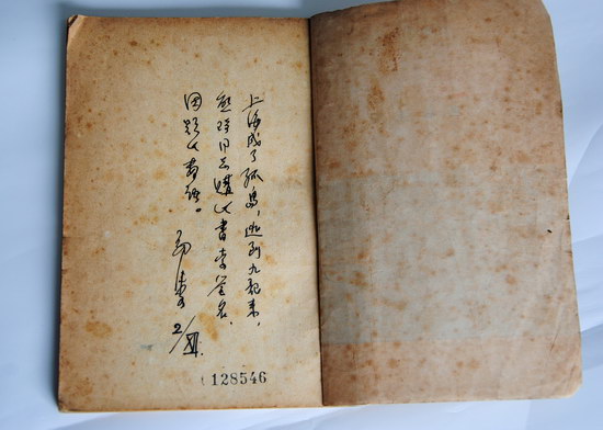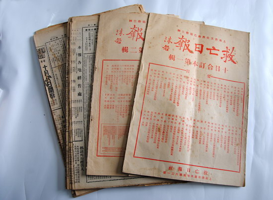 現(xiàn)代文學(xué)家、歷史學(xué)家郭沫若于1937年10月出版的《抗戰(zhàn)與覺悟》一書也將展出。值得一提的是,該展品內(nèi)頁還附有郭沫若先生為購書者親筆題寫的簽名及寄語:“上海成了孤島,逃到九龍來,熊琦同志購此書索簽名,因題此數(shù)語”。其它展品,如:1937年發(fā)行的《救亡日報(bào)》83份、1947年9月出版的《抗戰(zhàn)前后》精裝上下冊、八路軍山東膠東軍區(qū)政治部印編的《血戰(zhàn)八年的膠東子弟兵》,以及上海特別市執(zhí)行委員會(huì)宣傳處于1946年9月發(fā)行的《勝利周年紀(jì)念手冊》等也將一同獻(xiàn)展。