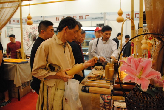 安吉是擁有1700多年歷史的文化名城,名字取自詩(shī)經(jīng)“安且吉兮”。它地處天目山麓,太湖之濱,擁抱百萬(wàn)畝竹林。青山綠水孕育的蔥蘢竹海已經(jīng)通過(guò)電影《臥虎藏龍》讓人們領(lǐng)略了它的風(fēng)姿。如果無(wú)法親臨安吉,您也不用遺憾。上海云洲古玩城八樓會(huì)展中心舉行的“走進(jìn)竹?!憬布裎幕囆g(shù)展”將原汁原味的安吉竹文化呈現(xiàn)給申城的藏友。展品中,玉竹、羅漢、湘妃等品類應(yīng)有盡有,提梁燈、竹包、竹家具等一應(yīng)俱全。天然的材質(zhì)、傳統(tǒng)的手工藝、匠心獨(dú)具的現(xiàn)代設(shè)計(jì),讓您足不出“滬”就可以盡享靜謐、安寧的竹文化。
