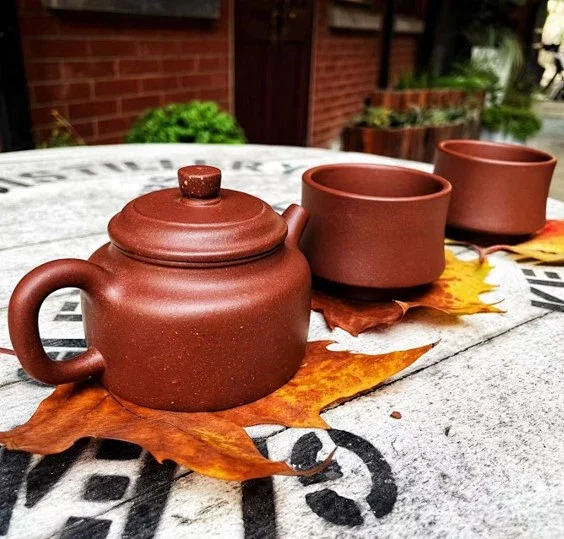 德鐘壺是清嘉慶年間制壺巨匠邵大亨的首創(chuàng),它一洗清宮廷繁縟之氣,器形端莊穩(wěn)重,是光素造型中的一大代表。鐘德其名,鐘通禮樂(lè),即樂(lè)德,寓意做人做事行方圓,操守德行,事尊禮樂(lè)。配兩只竹節(jié)杯,與壺相映成趣。純天然紫砂泥料,顆粒感明顯,古樸典雅。由宜興紫砂大師呂偉親制。